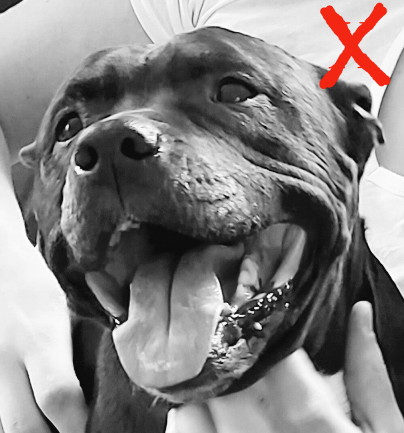 Bij deze hond is de foto onscherp. Ondanks dat het een leuke foto is is hij heel moeilijk te tekenen omdat er geen details zichtbaar zijn.